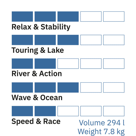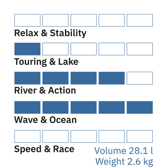 Einzige Ausnahme: unsere Ultralight-SUP. Hier verwenden wir ein einwandiges, gewebeverstärktes PVC-Rail und verstärken nur die Naht doppelt. Der Vorteil: Das SUP lässt sich äusserst kompakt rollen und es wird einiges an Gewicht eingespart. - Bei sorgfältigem Umgang mit einem Single-Layer-Rail SUP hält dies gleich lang wie ein doppelwandinges SUP.